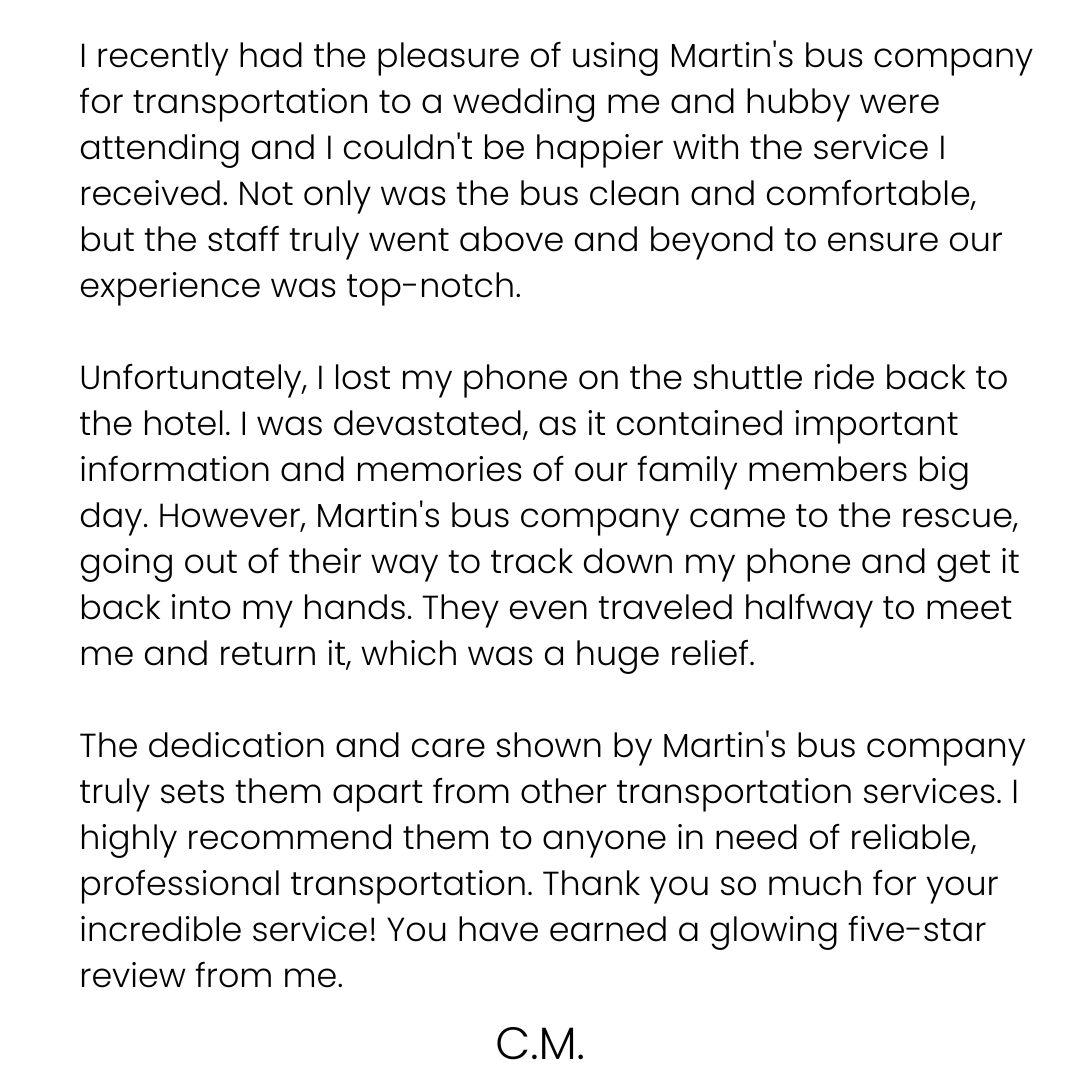If you have these qualities and traits, we invite you to learn more about training to be a bus driver and joining the Martin’s team!